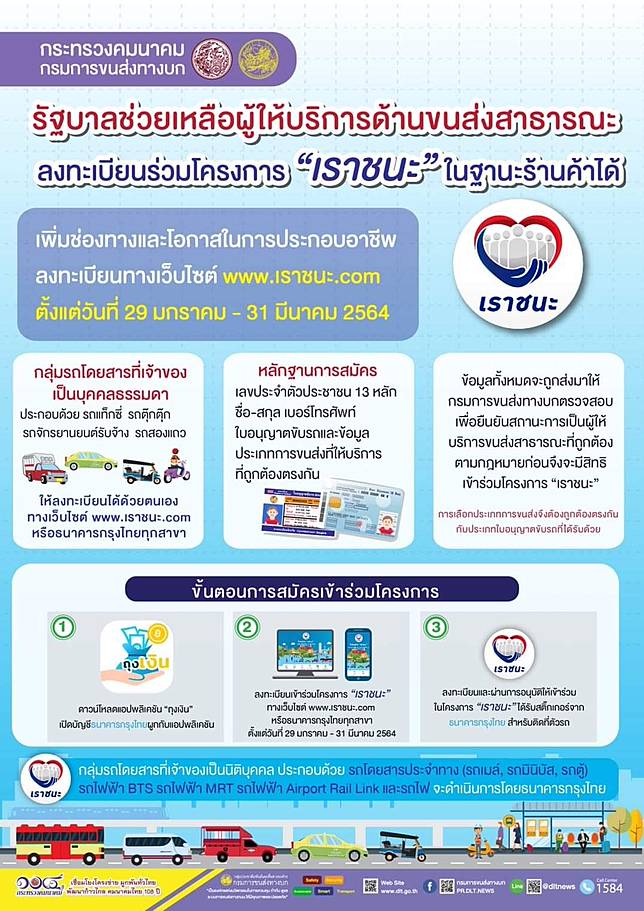 เปิดขั้นตอนลงทะเบียนผ่าน www.เราชนะ.com แบบละเอียดที่นี่ เริ่มลงทะเบียนได้ตั้งแต่วันที่ 29 มกราคม 2564 ตั้งแต่เวลา 06.00 น.